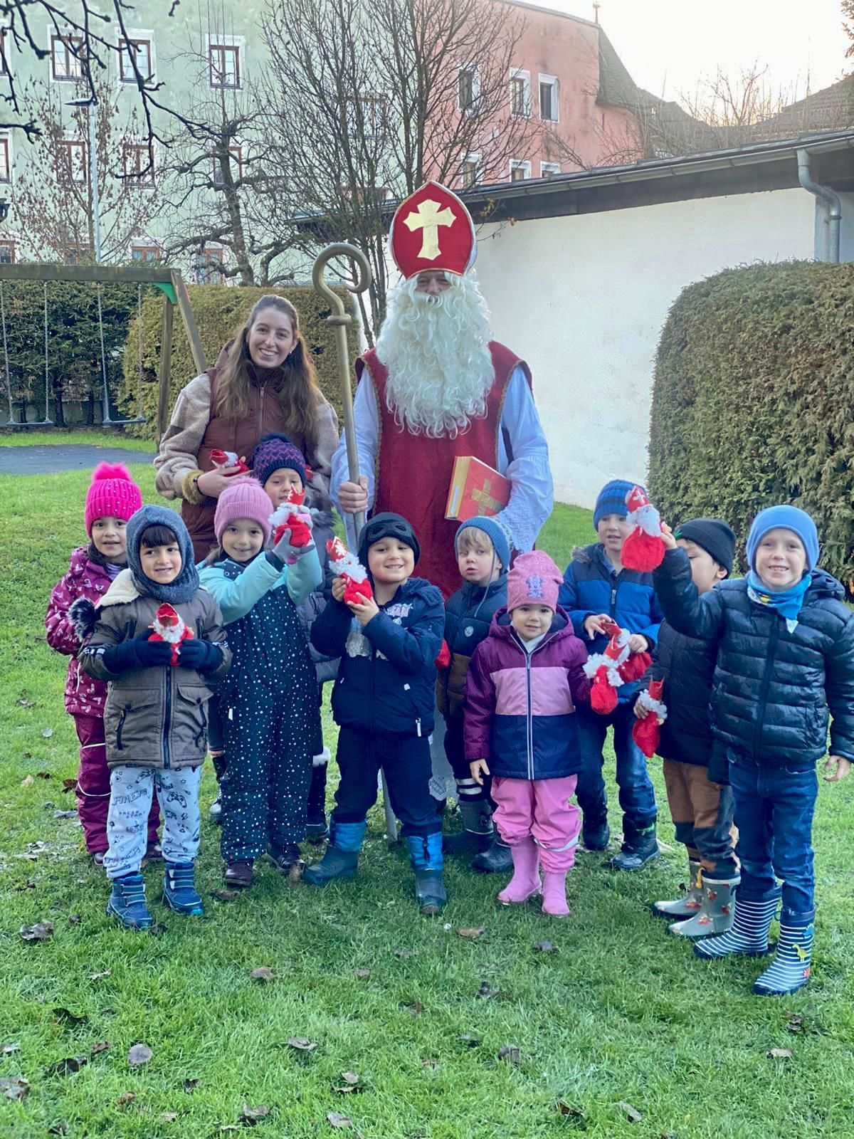 Wir dürfen den Nikolaus bei uns im Garten begrüßen. Er hat uns auch dieses Jahr wieder leckere Gaben mitgebracht. Anschließend lassen wir uns unsere selbst zubereitete Nikolausjause schmecken.